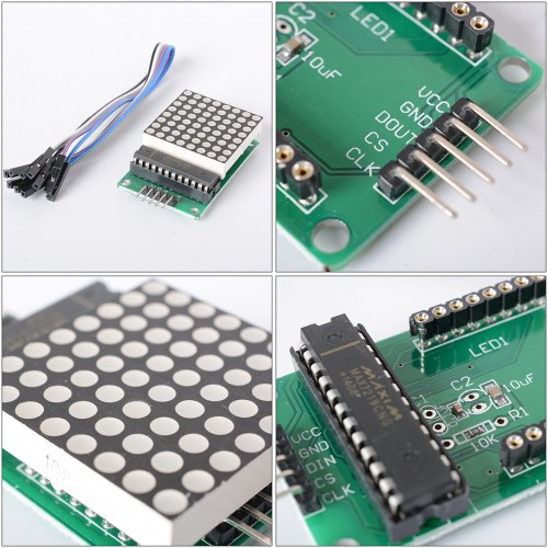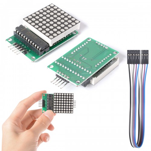 8x8 kırmızı dot matrix modülü farklı ve eğlenceli uygulamalar geliştirmek için tasarlanmış Arduino, pcDuino ve diğer mikrodenetleyiciler ile kontrol edilebilir. Kart üzerindeki serial arayüze sahip MAX7219 entegresi ile ortak katodlu dot matris sürülmektedir.