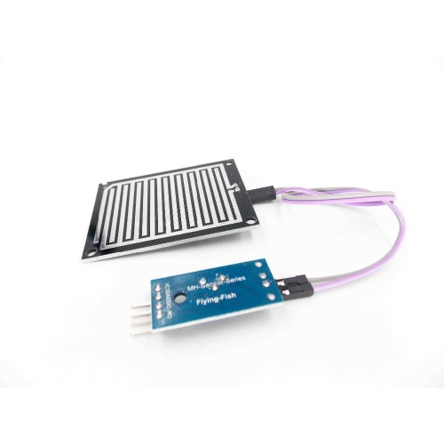 Bu sensör yağmur ve su damlası sensörü olarak kullanılabilen bir üründür. Bu modül ile havanın yağış durumunu tespit edebilirsiniz. Modülün dijital çıkışından yapmur yağıp yağmadığını, analog çıkışından ise yağmur miktarını da ölçebilirsiniz.