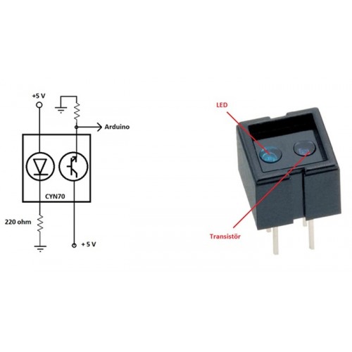 CNY70 üzerinde iki adet LED bulunmaktadır. Bu LED'lerden birisi kızılötesi ışık yayar. Yüzeye çarpan kızılötesi ışık, sensör üzerinde bulunan diğer LED'de toplanır. Toplanan kızılötesi ışığın şiddeti sensör tarafından ölçülür. Siyah ve beyaz renklerin kızılötesi ışığı yansıtma katsayıları farklı olduğu için, sensörden okunan farklı ışık şiddetleri Arduino tarafından siyah ve beyaz renk olarak algılanır. Sensör topladığı kızılötesi ışığın şiddetine göre analog bir çıkış verir. Bu yüzden CNY70 sensörü Arduino'nun analog girişlerine bağlanır.