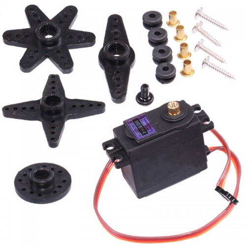 - Dişli kutusu metaldir. Servo hornları ve diğer parçaları ile birlikte gönderilir.