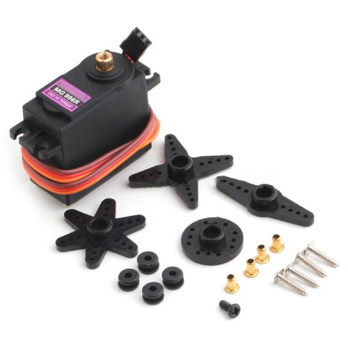 Tower Pro MG996 güçlü mekanizmalarınız için ideal bir servo motordur. Futaba kumandalarla tam uyumlu olup RC araclarınızda kullanabilirsiniz. Bunun yanı sıra birçok mikrodenetleyiciden alabileceğiniz PWM sinyali ile kendi yaptığınız robot projelerinizde de kolaylıkla kullanabilirsiniz.